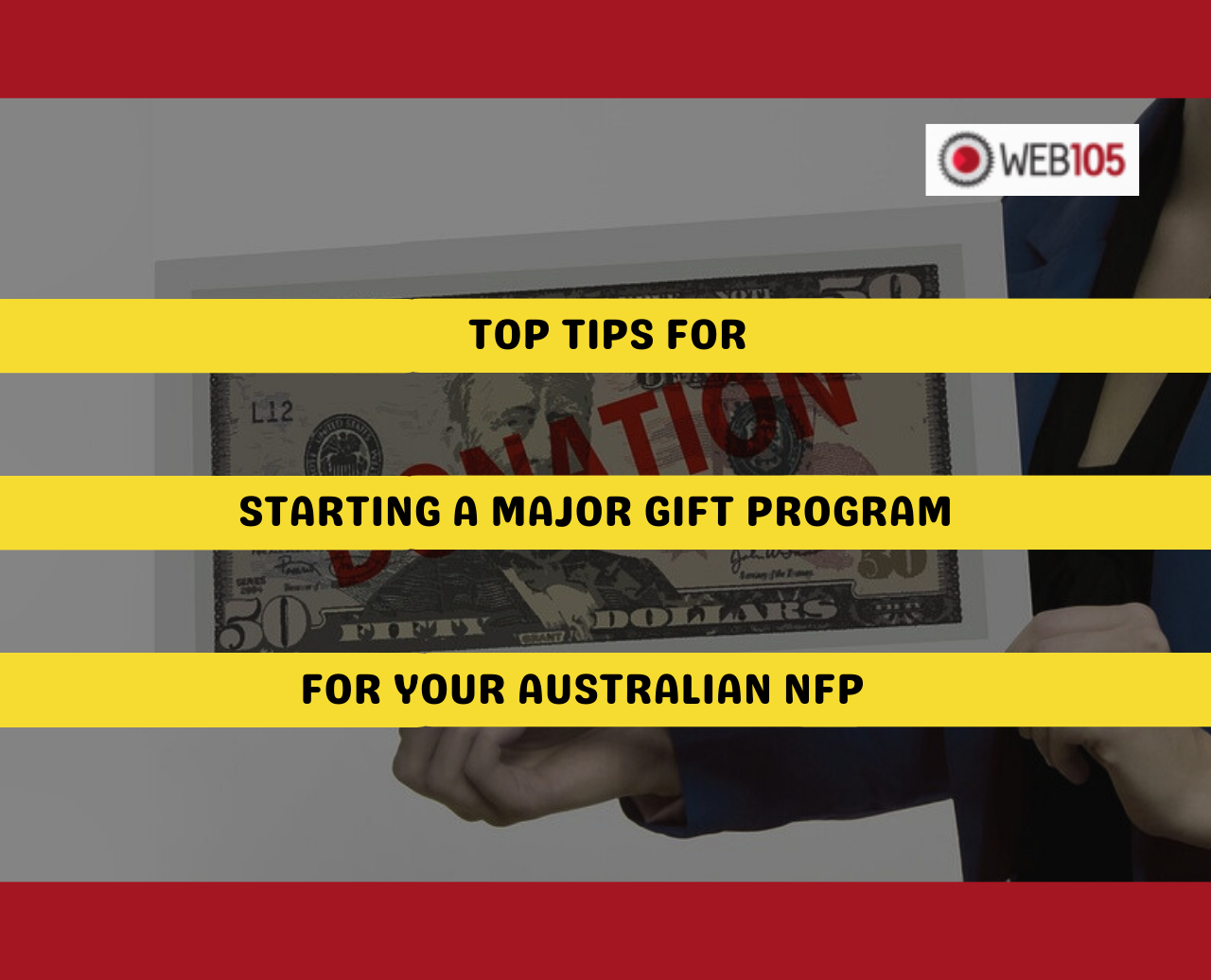 At Web 105, our role is to design and develop cutting-edge, visually engaging websites for NFPs like yours. That way, when you get your major gift program off the ground, we provide the online space to collect gifts, share news, and do anything else that might attract and retain big donors.